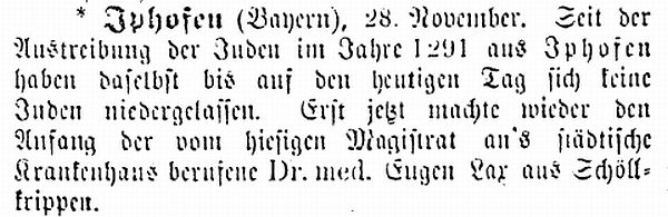 in der Zeitschrift "Jeschurun" vom Dezember 1883 S. 859: "Iphofen