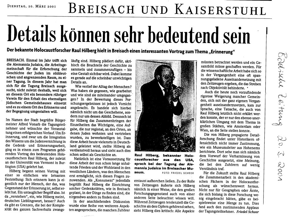 Dazu erschien in der Badischen Zeitung vom 20. März 2001 ein Bericht