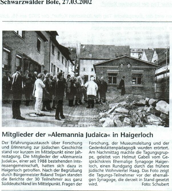 Die Jahrestagung 2002 der Alemannia Judaica fand am 17. März 2002 in