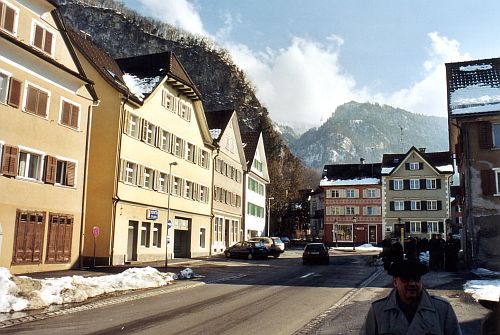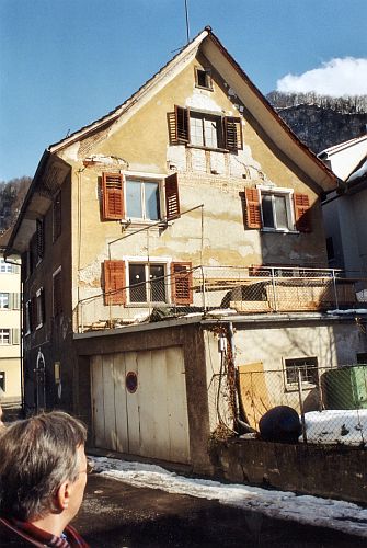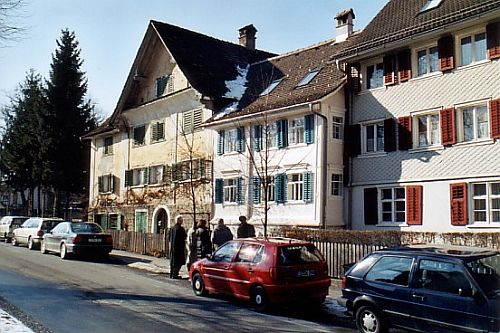 Wohnhäuser, in der Mitte das frühere Haus des Vorsängers |
