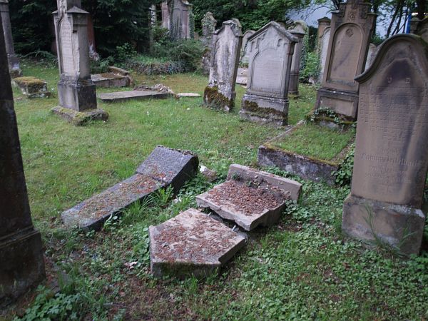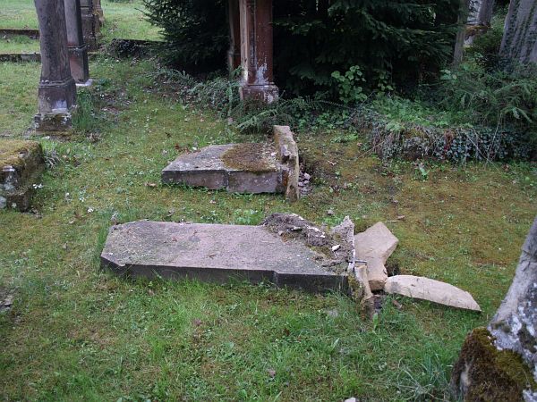 Schändung des Friedhofes umgestürzten Grabsteine |