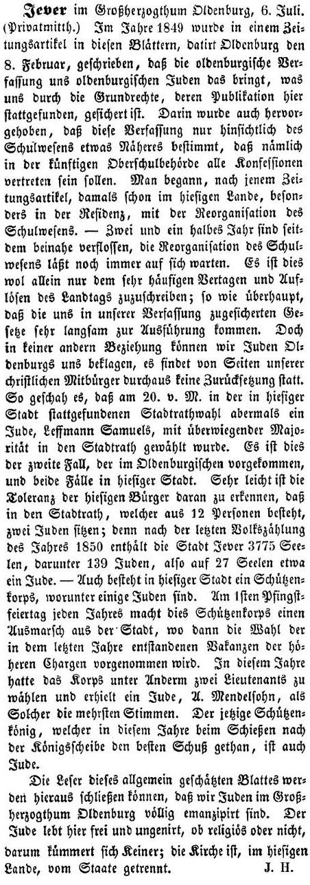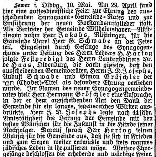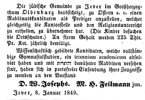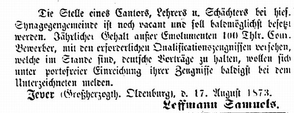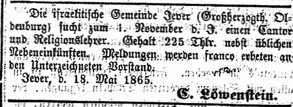 besuchten bei ihm den Religionsunterricht. Zur jüdischen Gemeinde Jever gehörten