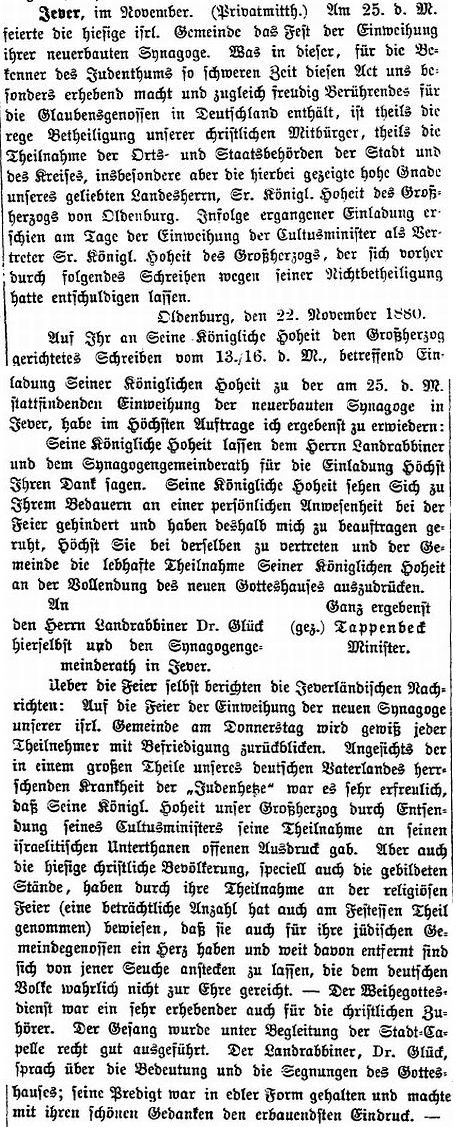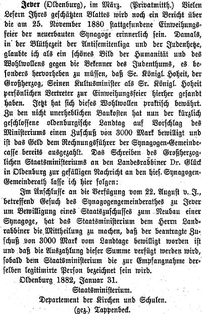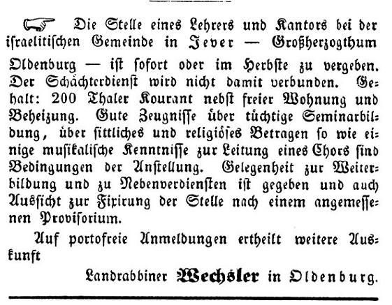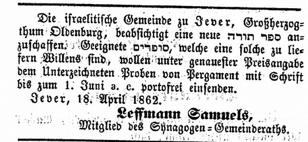 Die jüdische Gemeinde Jever gehörte zum Landrabbinat in Oldenburg. Mitte der
