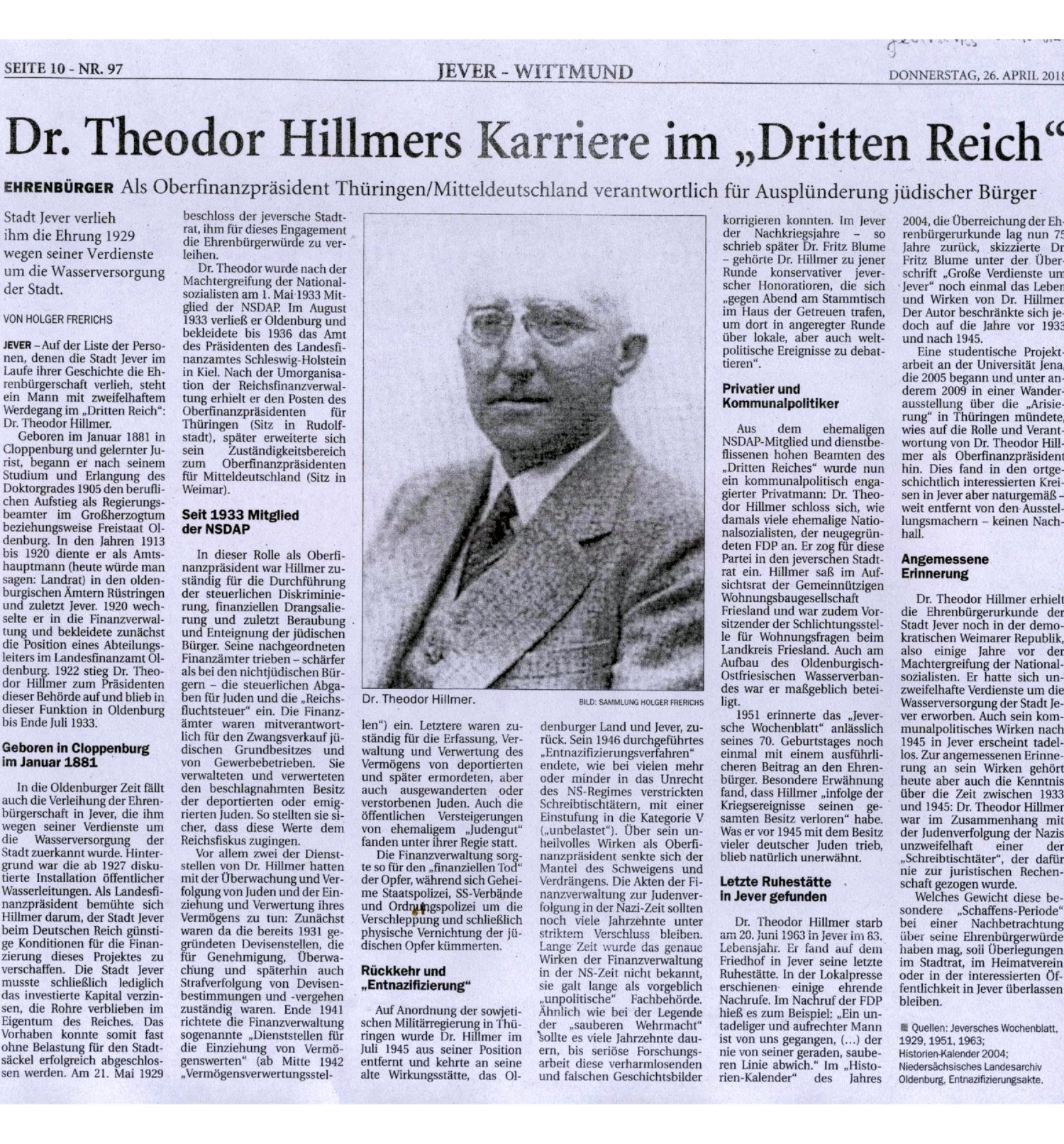 Dazu Artikel von Hans Begerow in nwzonline vom April 2018: "GESCHICHTE-