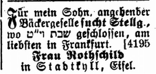Anzeige von Frau Rothschild in Stadtkyll (1901)