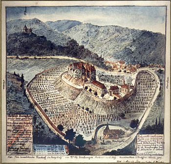 Guebwiller die Erlaubnis erhielt, die Toten auf dem Gelände der Edlen von Schauenburg