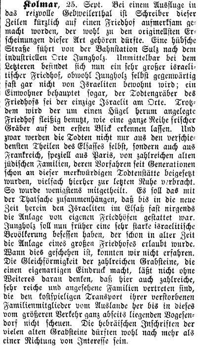 in der Zeitschrift "Der Israelit" vom 2. Oktober 1899: "Kolmar,