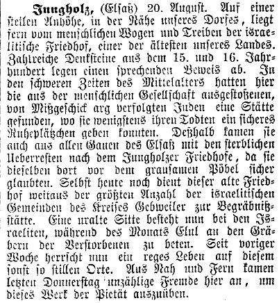 in der Zeitschrift "Der Israelit" vom 18. September 1890: "Jungholz