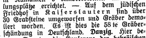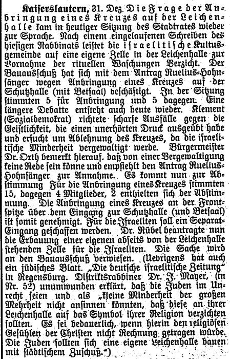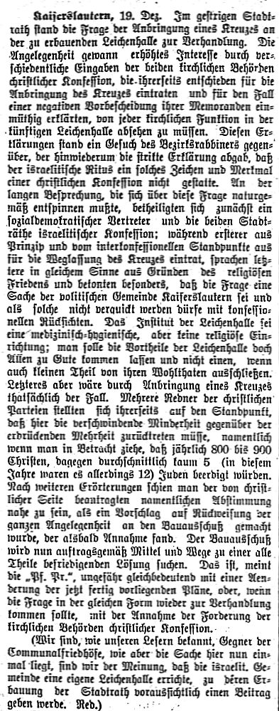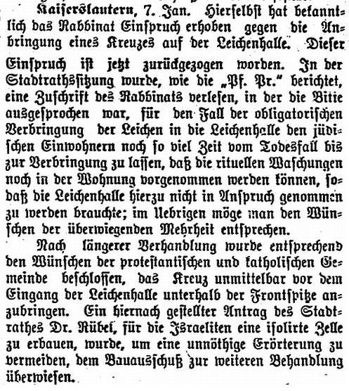 der Zeitschrift "Der Israelit" vom 8. Januar 1903: "Kaiserslautern,
