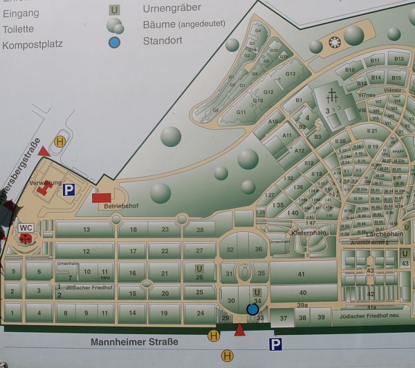 Friedhofes der Stadt belegt (heutiger Hauptfriedhof nördlich der Mannheimer Straße).