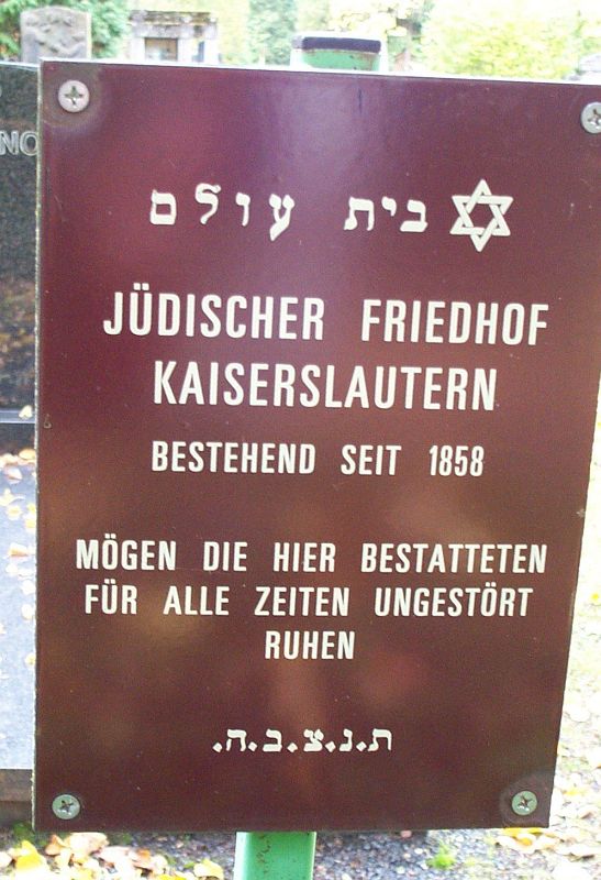 Der alte Jüdische Friedhof auf dem Hauptfriedhof in Kaiserslautern besteht seit 150 Jahren. Der erste jüdische Bürger wurde 1858 auf dem jüdischen Friedhof im Osten der Stadt beigesetzt. Die Christen wurden seinerzeit noch auf dem städtischen Friedhof an der Friedenstraße bestattet, der 1834 eingerichtet worden war. Somit gilt der Jüdische Friedhof als Keimzelle des Hauptfriedhofes, denn dieser hat sich erst 1874 aus diesem entwickelt.