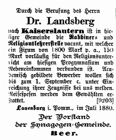 in der Zeitschrift "Der Israelit" vom 7. September 1903: