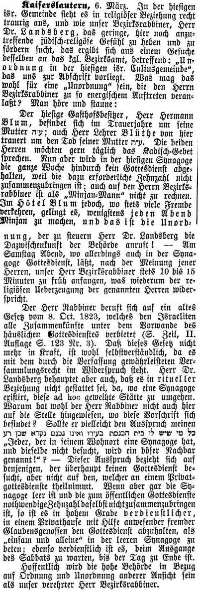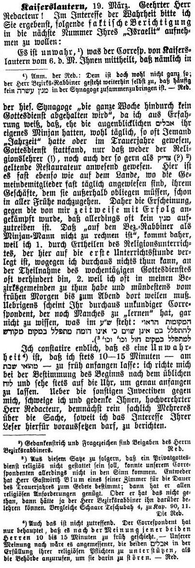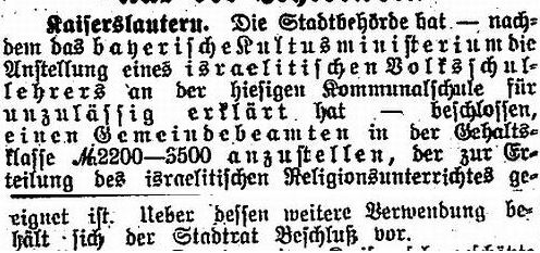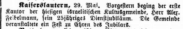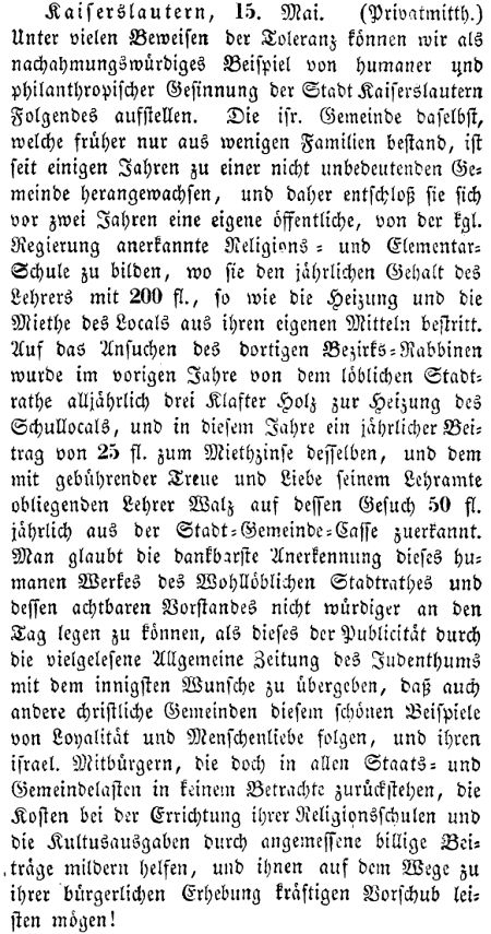 schließen, dass in dem genannten Jahre für die Juden Kaiserslauterns das