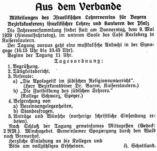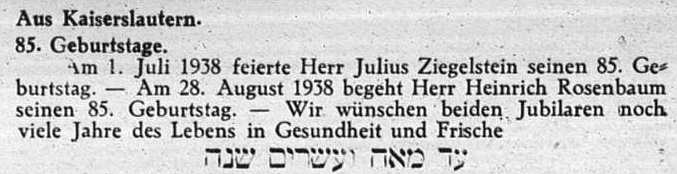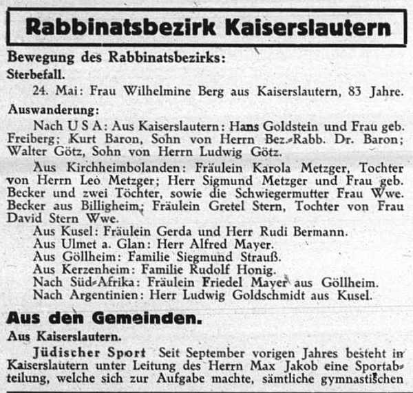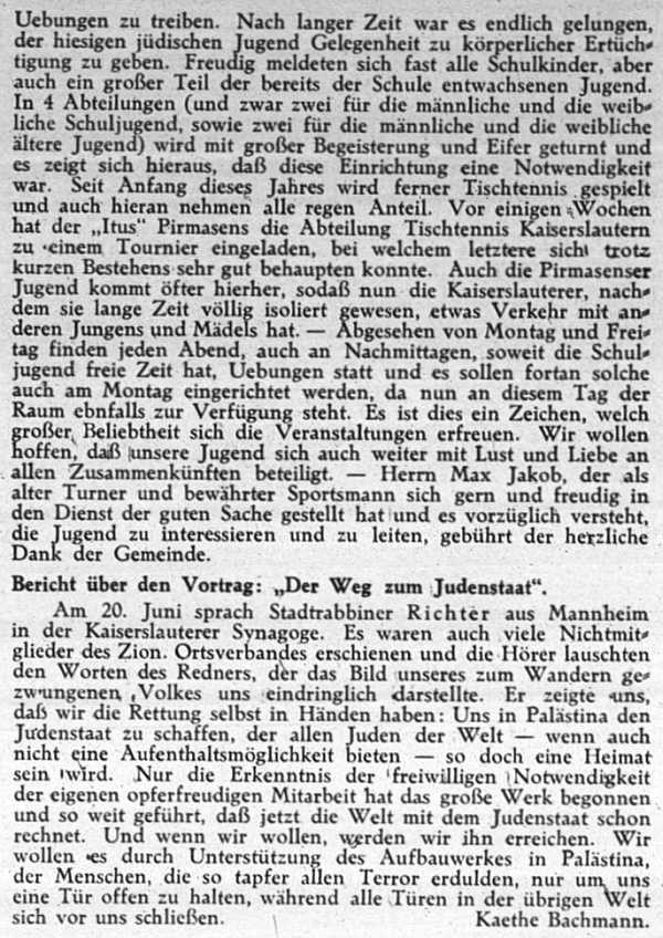 in der "Bayerischen Israelitischen Gemeindezeitung" vom 15. Juli 1936: "Die