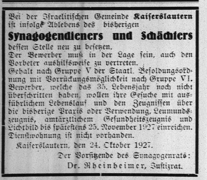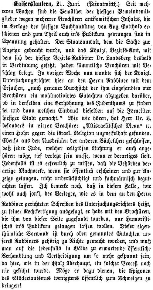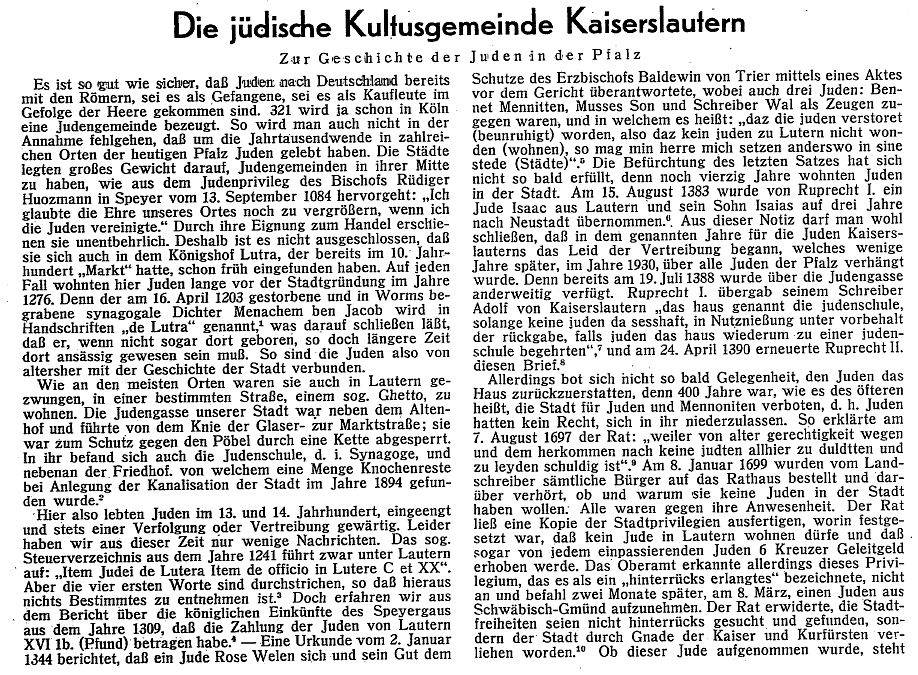 Beiträgen zur jüdischen Geschichte in Kaiserslautern wurden in jüdischen Periodika
