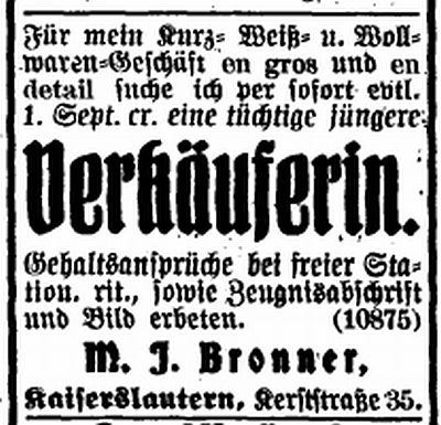 M.J. Bronner, Kaiserslautern, Kerststraße 35." |