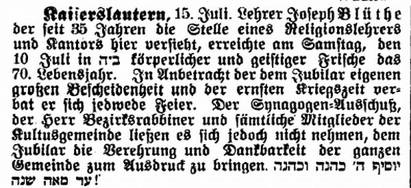in der Zeitschrift "Der Israelit" vom 12. August 1915:
