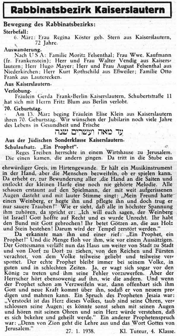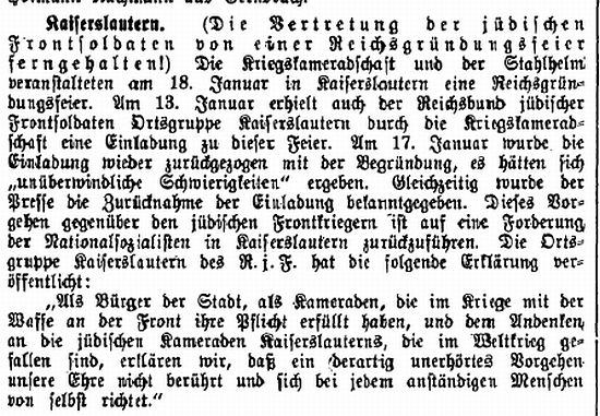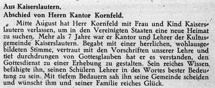 Rheinpfalz" vom 1. September 1938: "Aus Kaiserslautern.