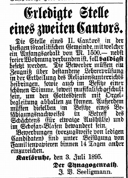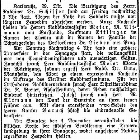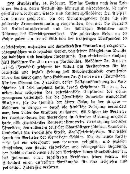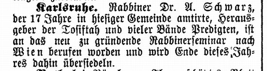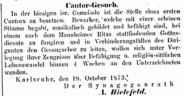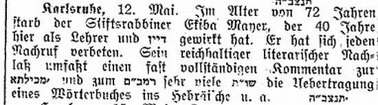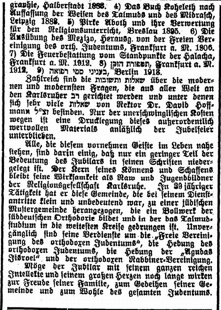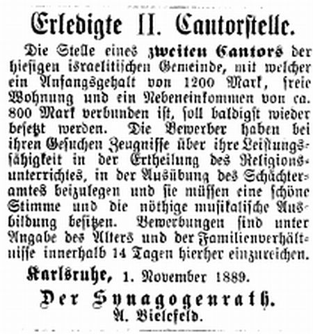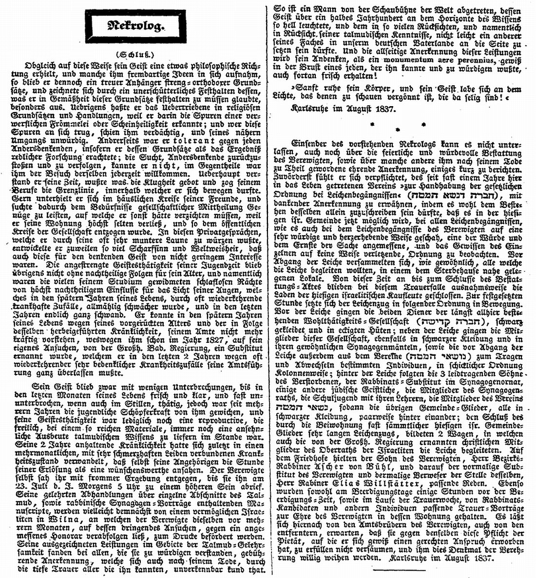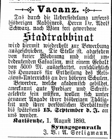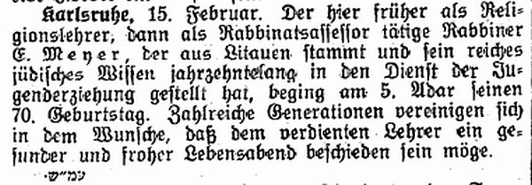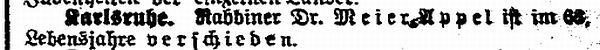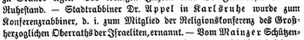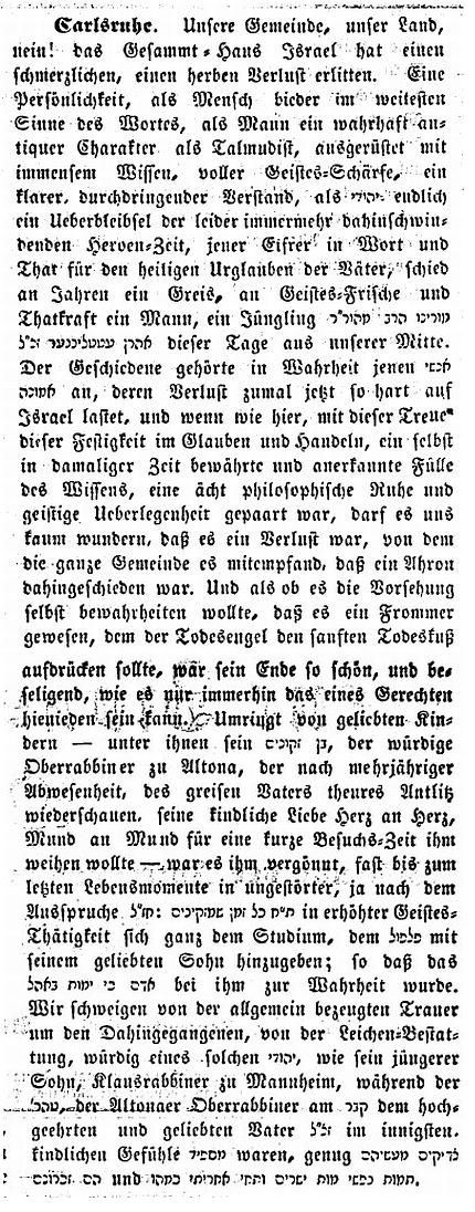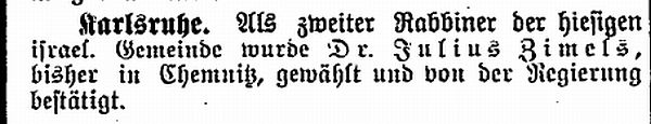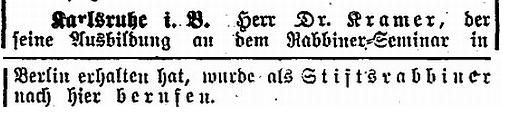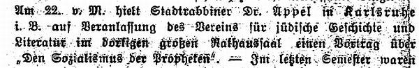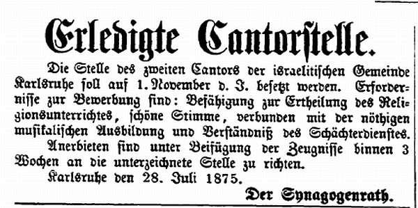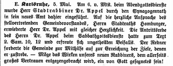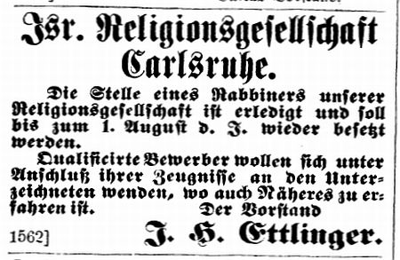 zunächst Privatgelehrter in Karlsruhe; seine Wahl auf die Stelle des Rabbiners