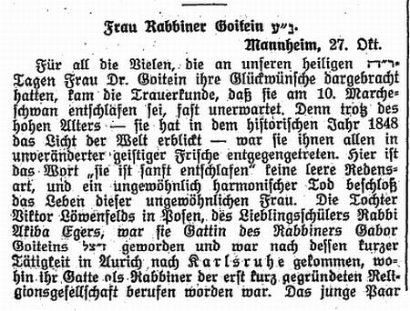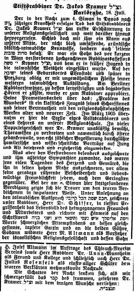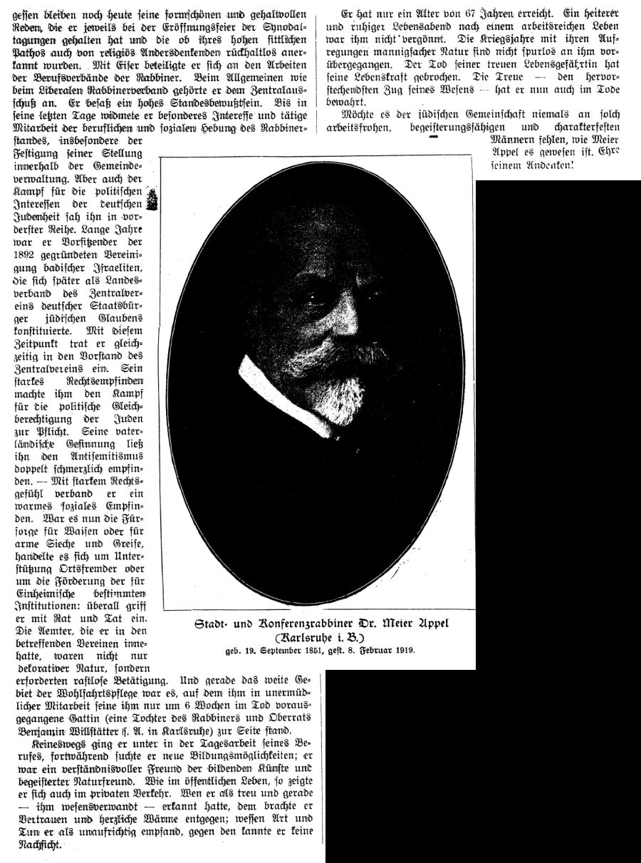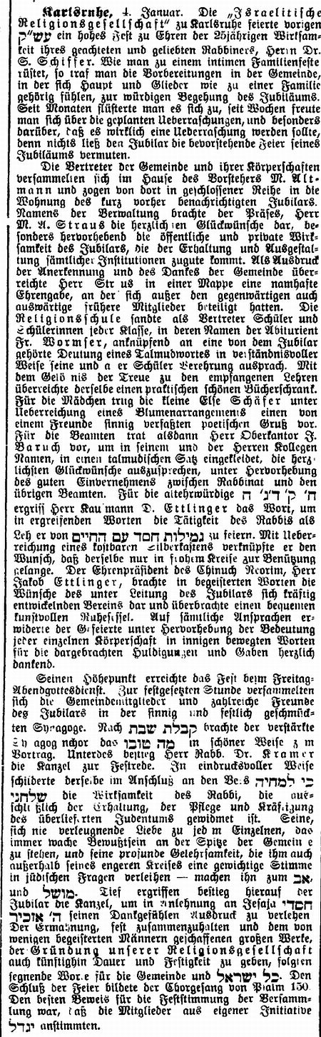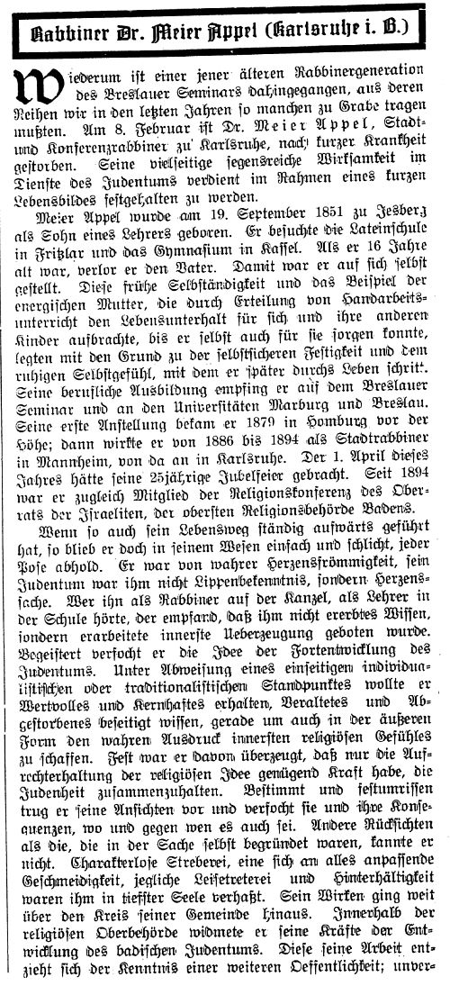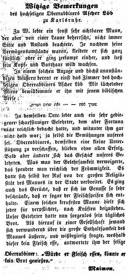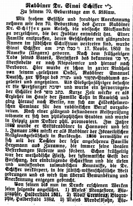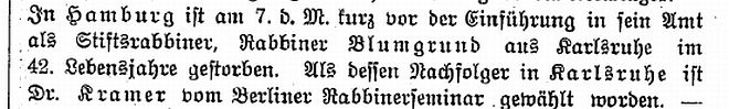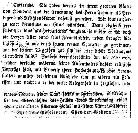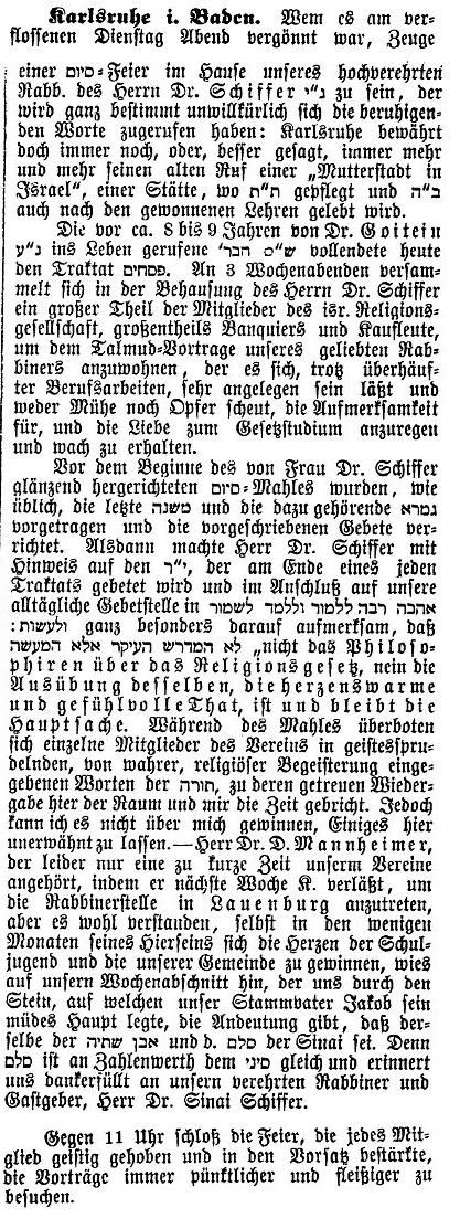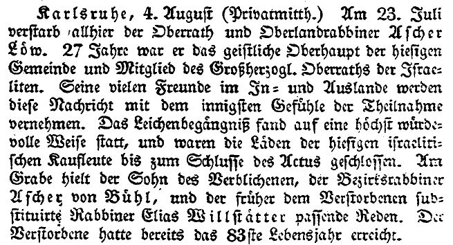 zunächst Privatgelehrter in Karlsruhe; seine Wahl auf die Stelle des Rabbiners