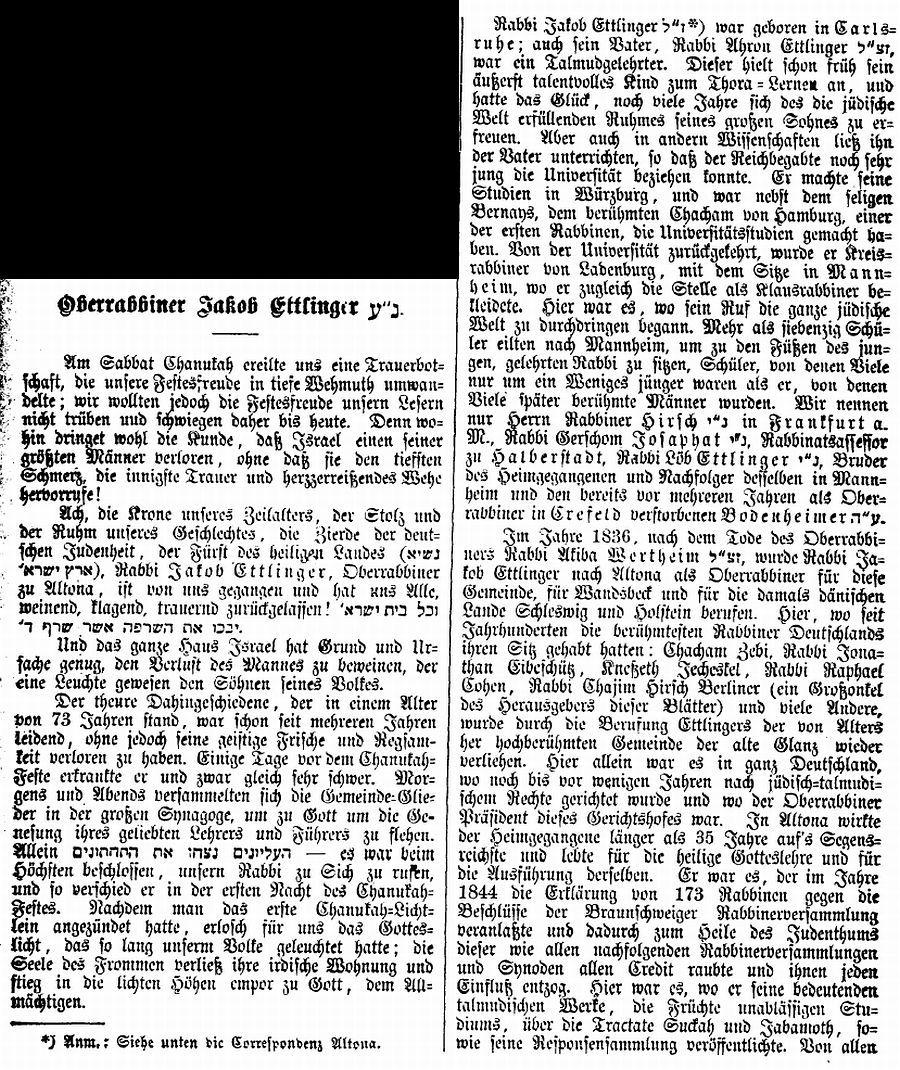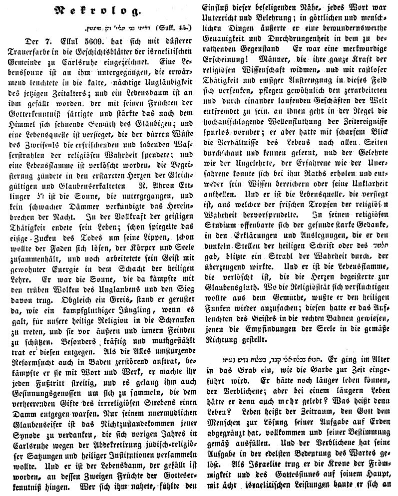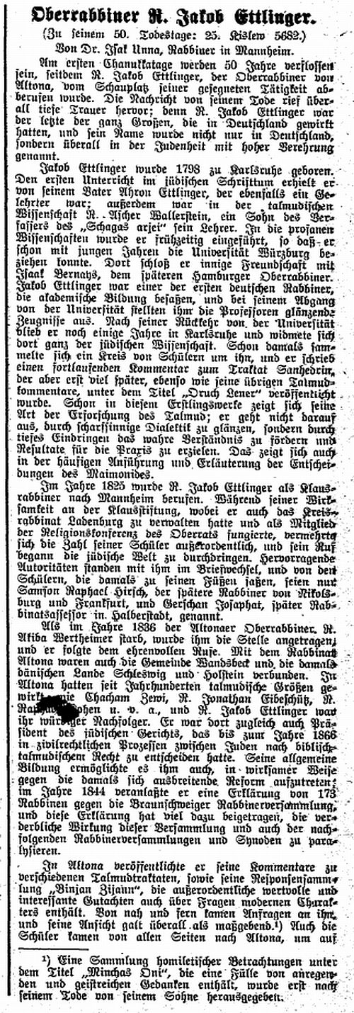 Nachfolger von Jakob Ettlinger 1825 die Talmudlehrerstelle an der Wormser'schen