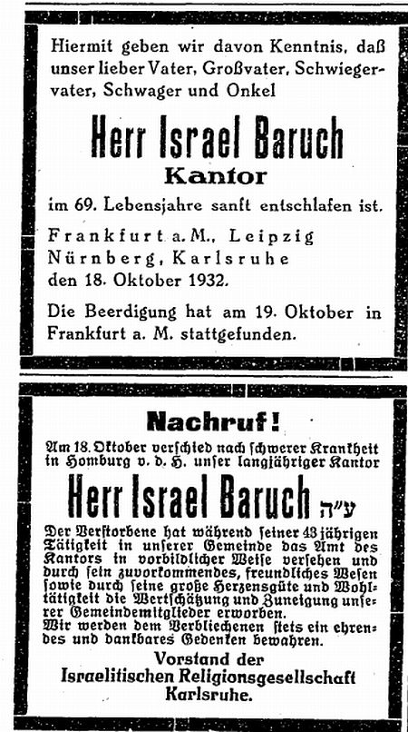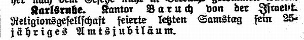 vom 19. April 1912: "Karlsruhe. Kantor Baruch von der