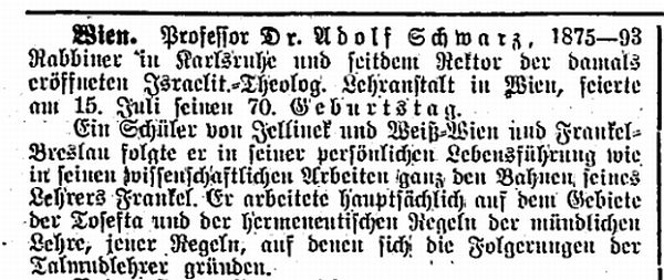 - 1875 bis 1893: Rabbiner Dr. Adolf Arye Schwarz (geb. 1846 in