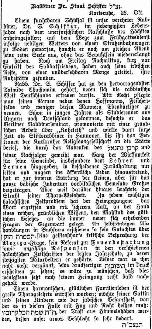 badischen Markgrafschaften in Karlsruhe (Oberrabbiner).