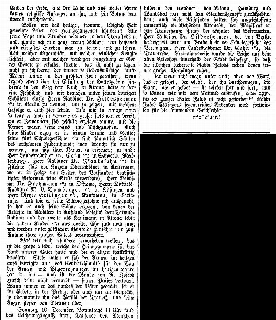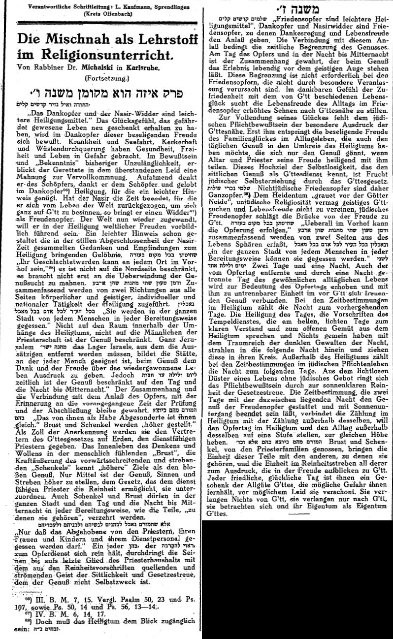 Artikel in der Zeitschrift "Der Israelit" vom 24. April