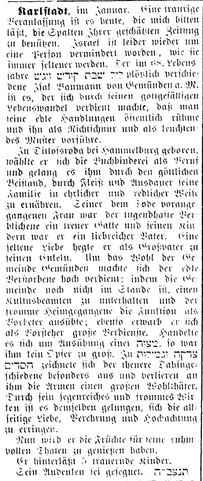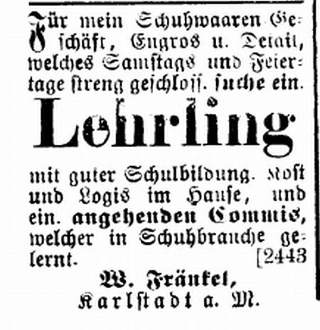 von Israel Rosenbaum, der von 1899 bis März 1938 in Karlstadt ein Trödler-,