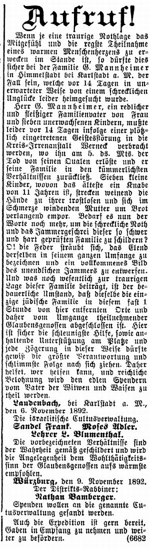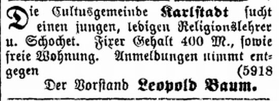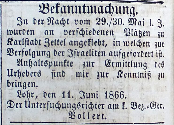 der Repressalien von Karlstadt verzogen (vor allem nach Frankfurt und Würzburg)