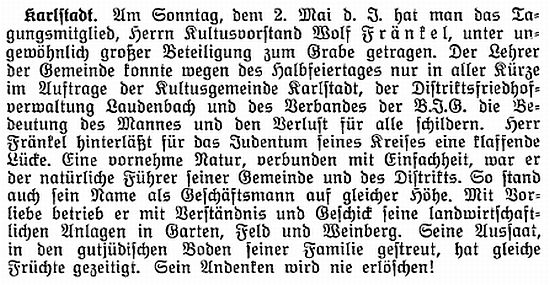 Distriktsrabbinat in Würzburg zugeteilt. 1932 waren die Vorsteher