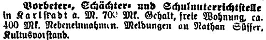 war ein Lehrer angestellt, der zugleich als Vorbeter und Schochet tätig
