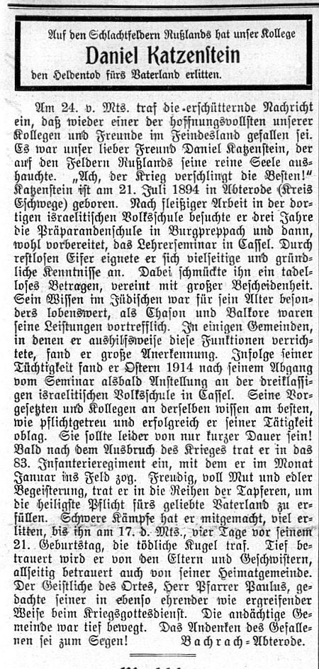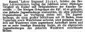 Zum Tod von Seminarlehrer Hermann Katz (1921, seit 1888 Seminarlehrer in Kassel)