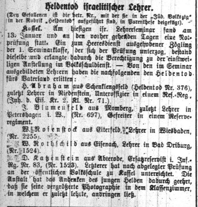 Katzenstein für den Vorstand der jüdischen Gemeinde, Herr Lehrer