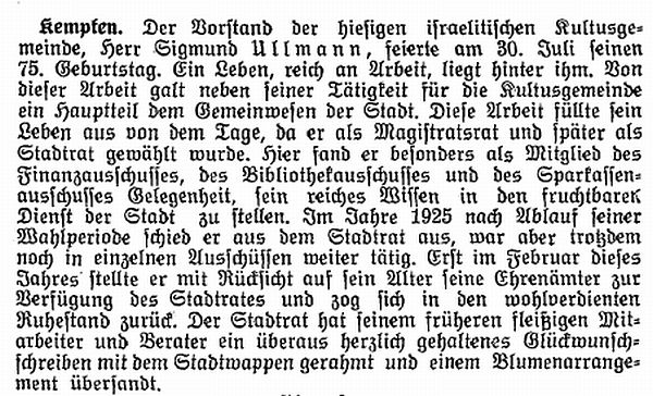 Gemeindevorsteher (weiterhin) Sigmund Ullmann (1. Vors., Immenstädter Straße),