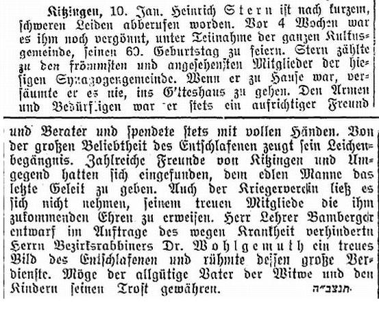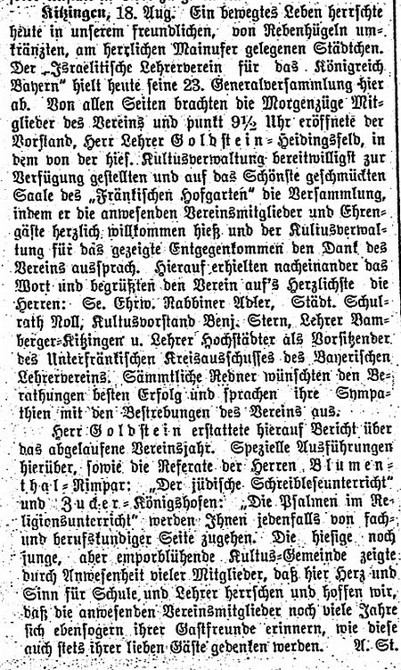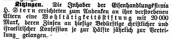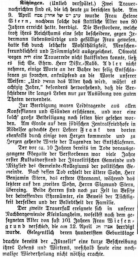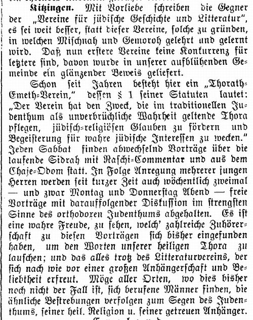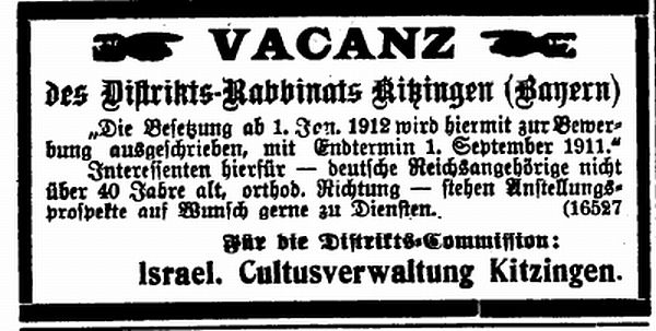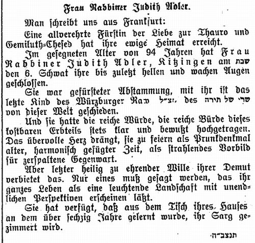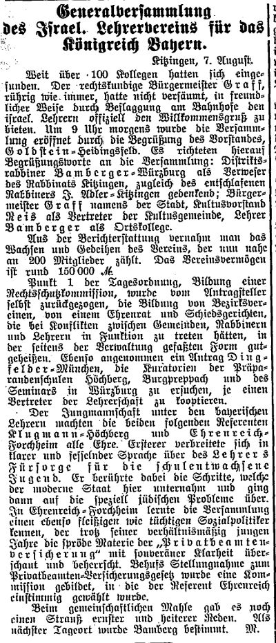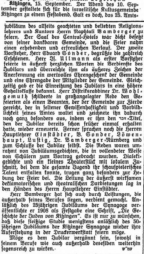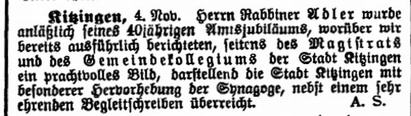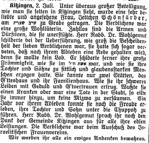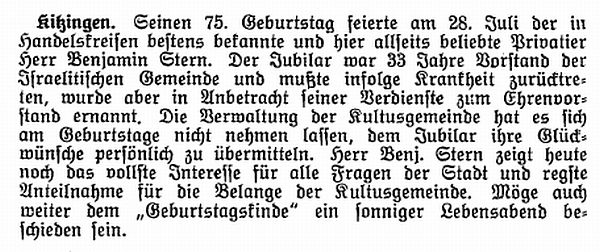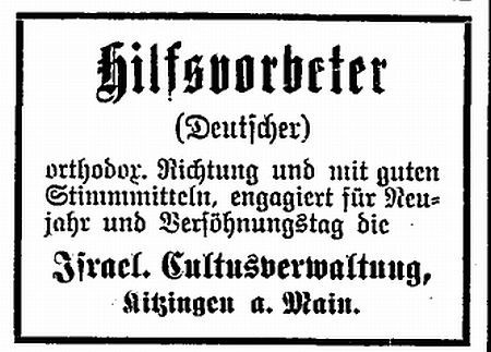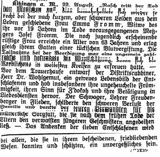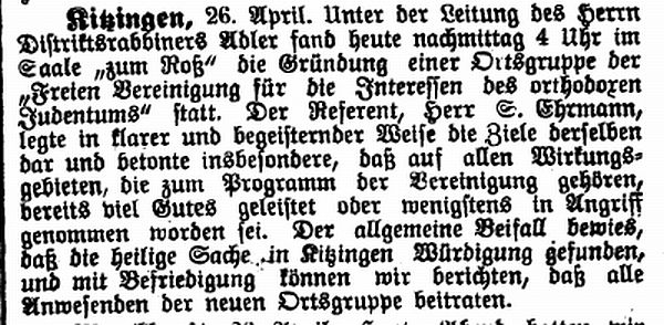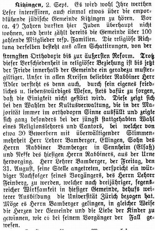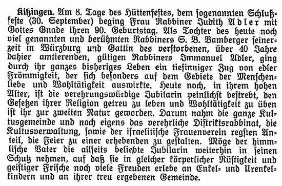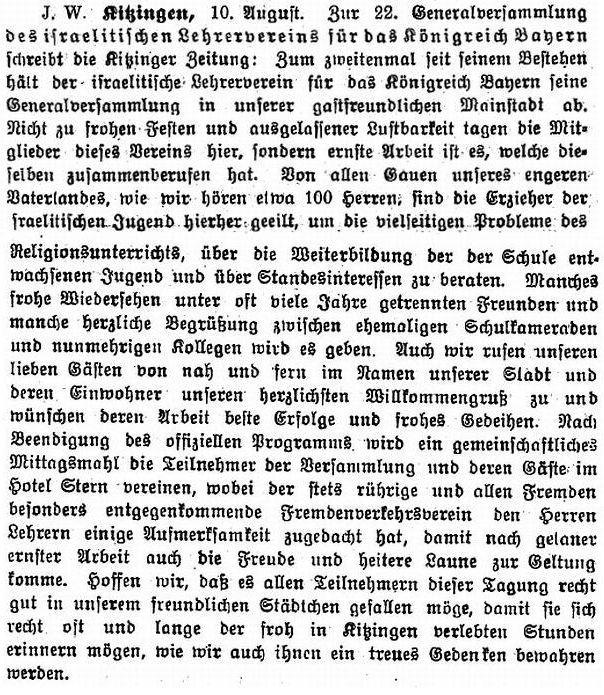 in der Zeitschrift "Der Israelit" vom 6. September 1900: "Kitzingen,