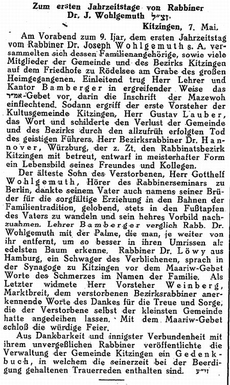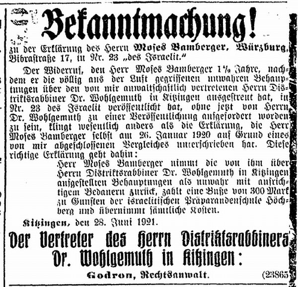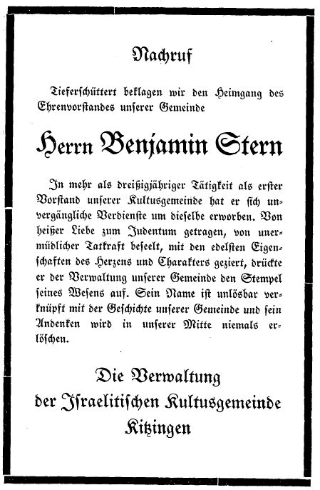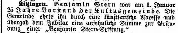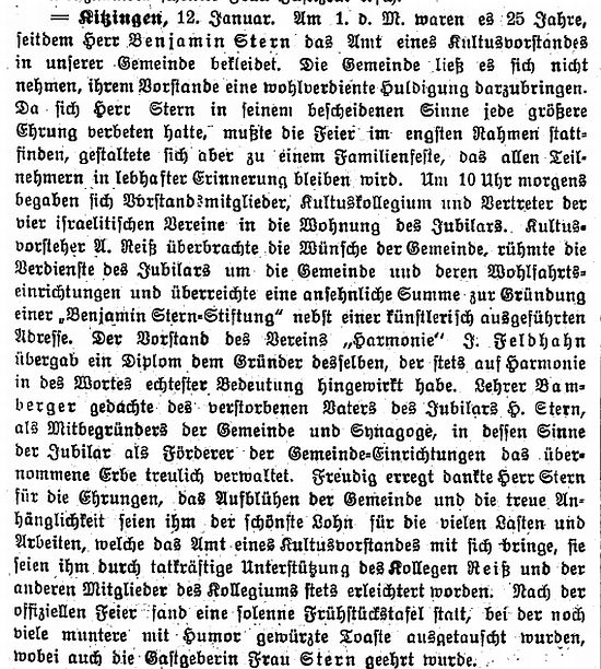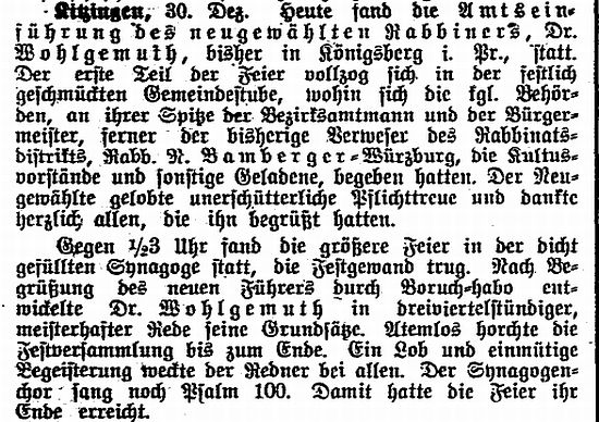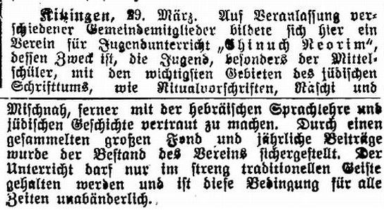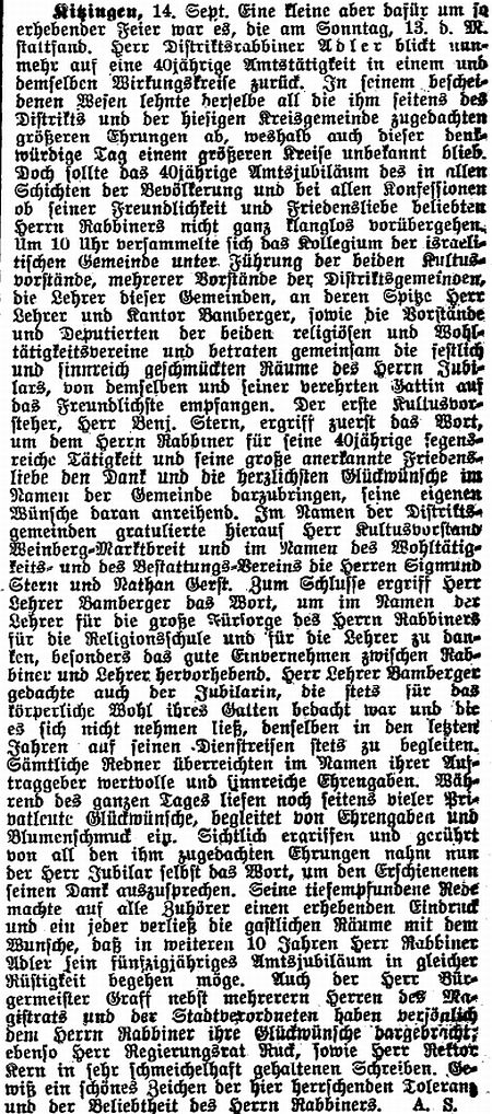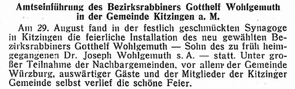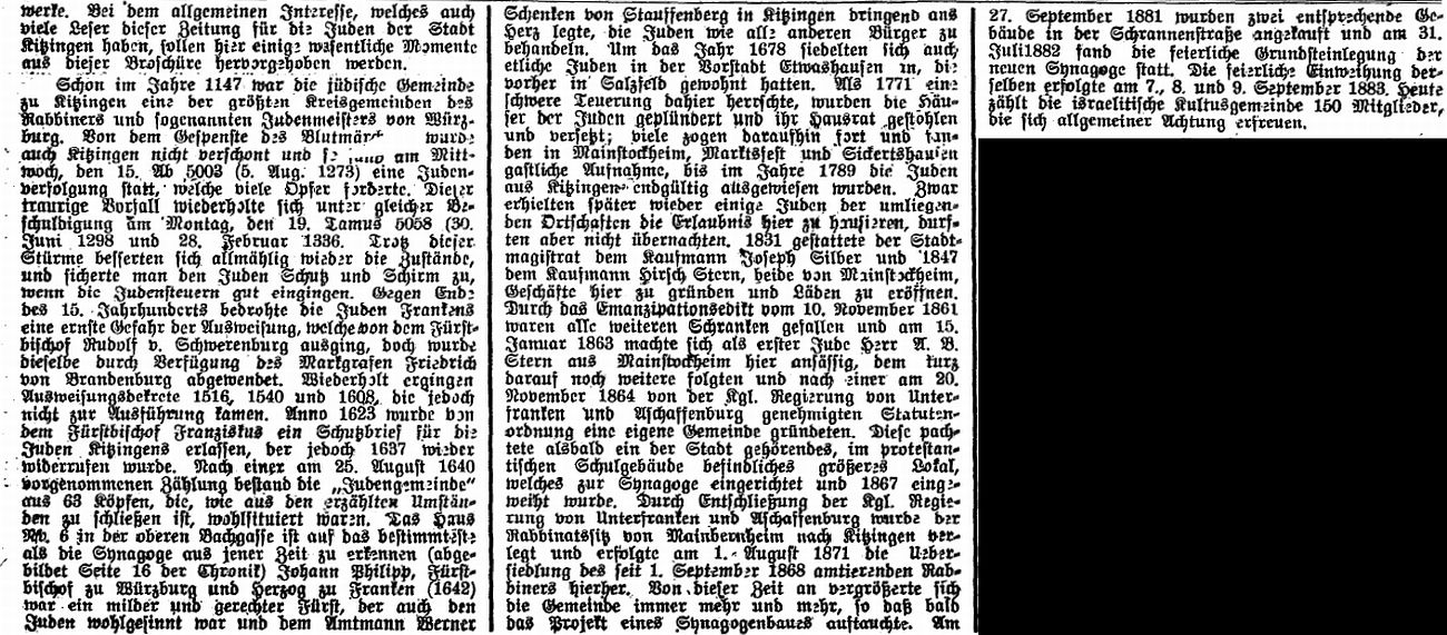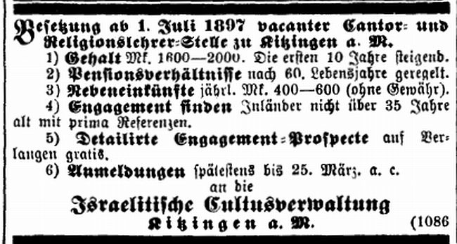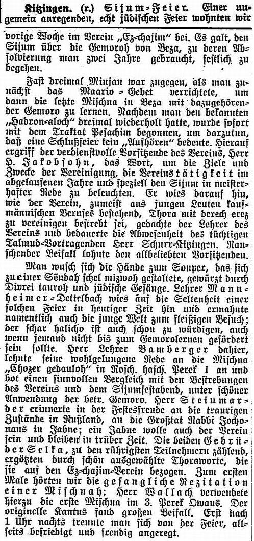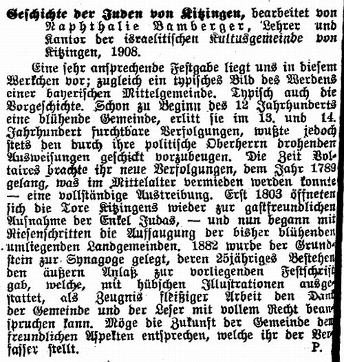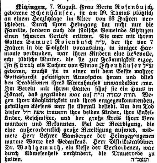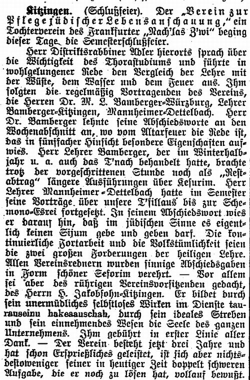 in der Zeitschrift "Der Israelit" vom 6. September 1900: "Kitzingen,