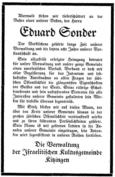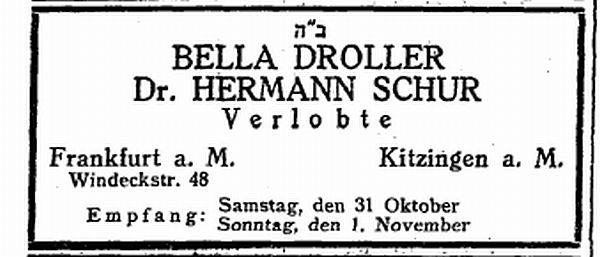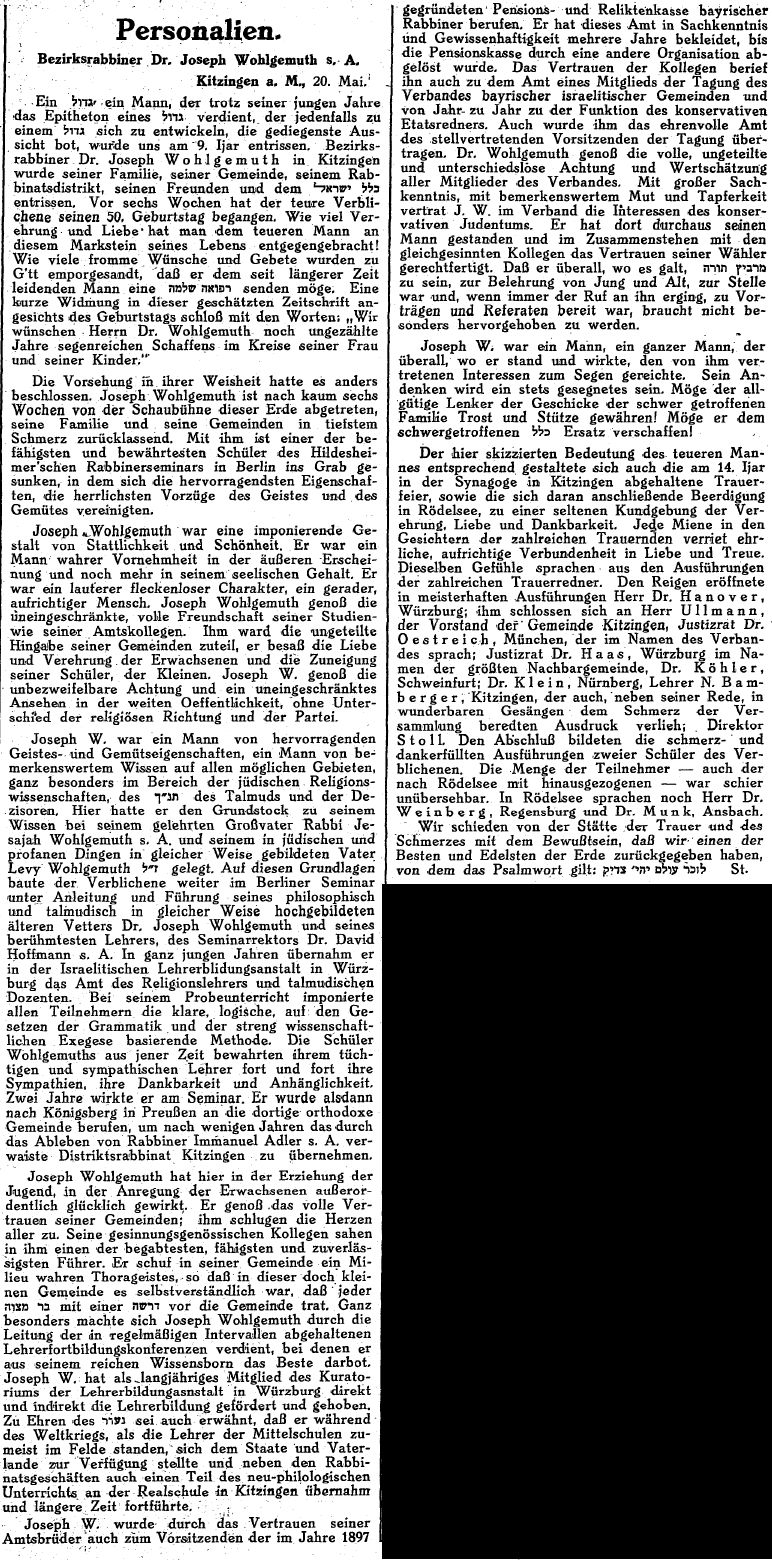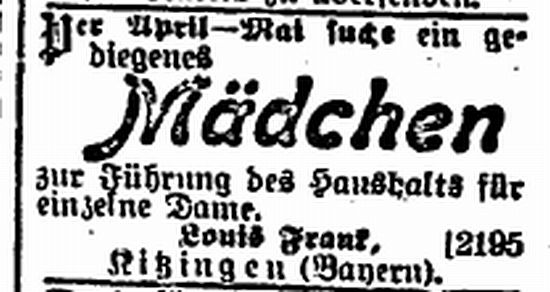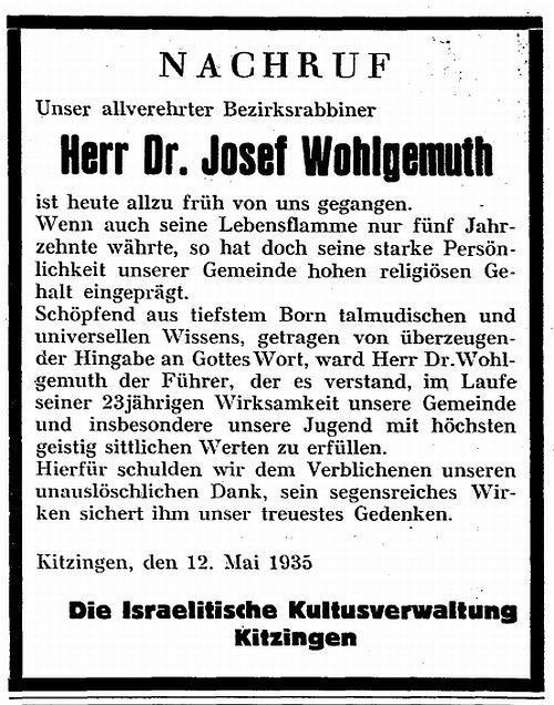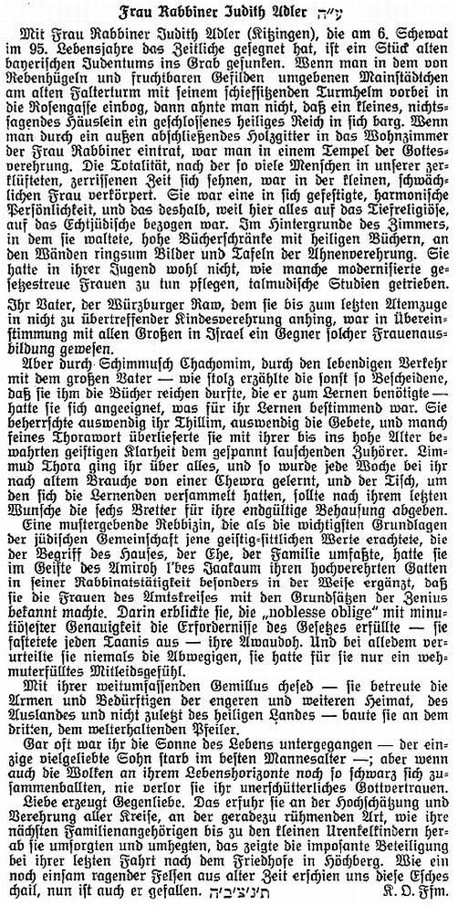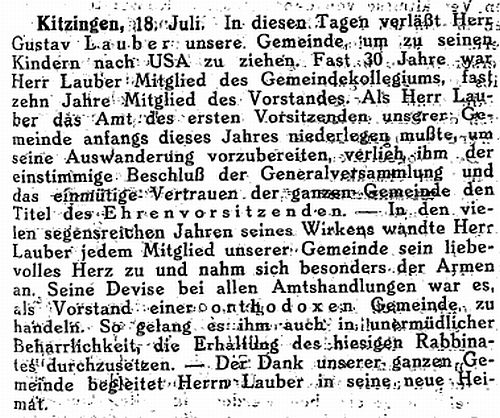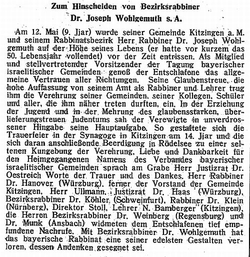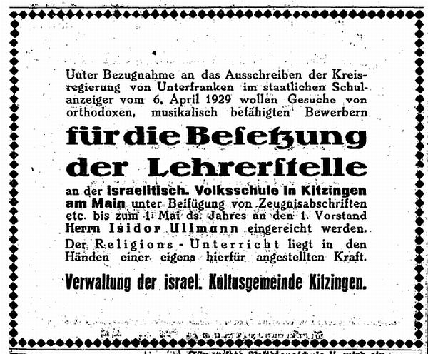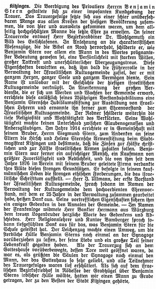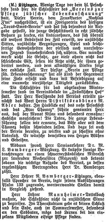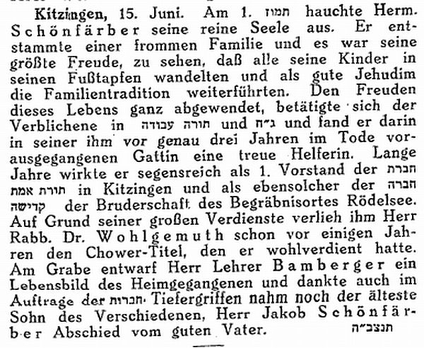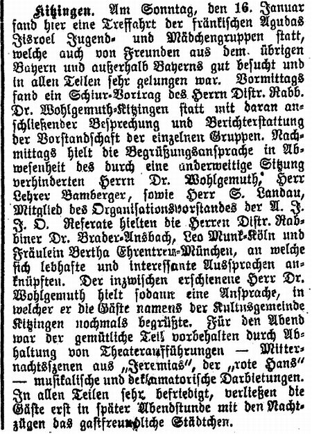 in der Zeitschrift "Der Israelit" vom 6. September 1900: "Kitzingen,