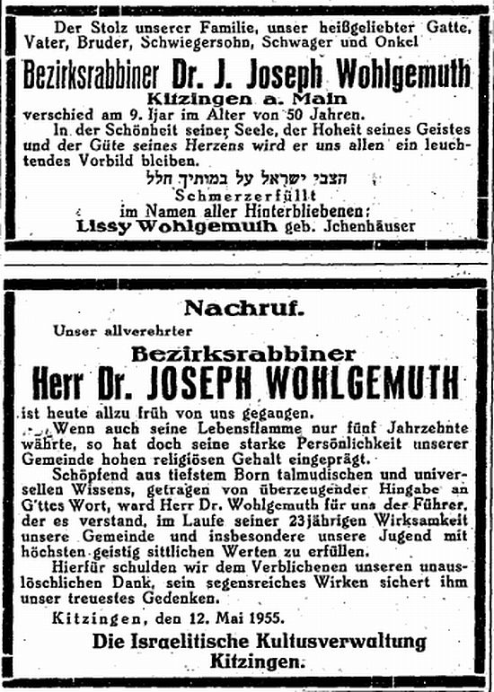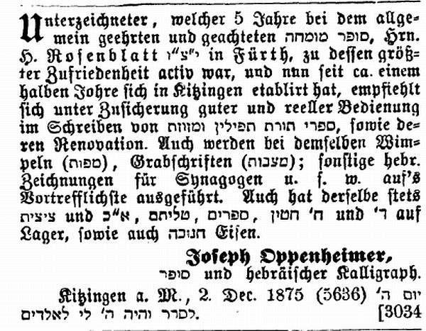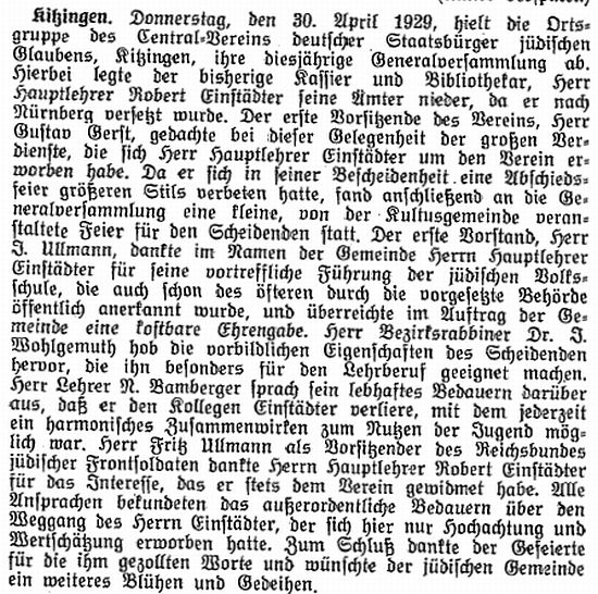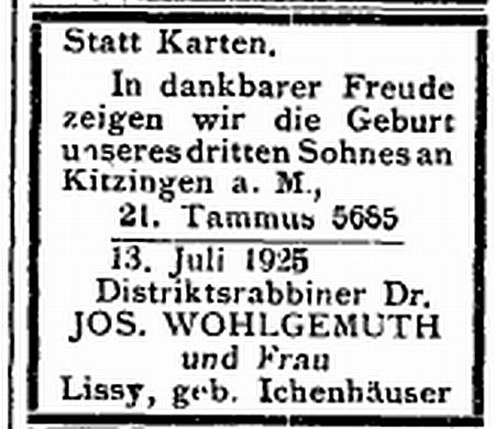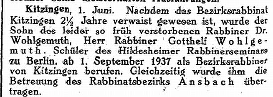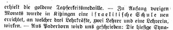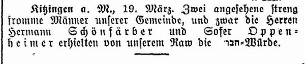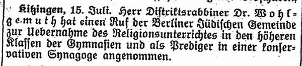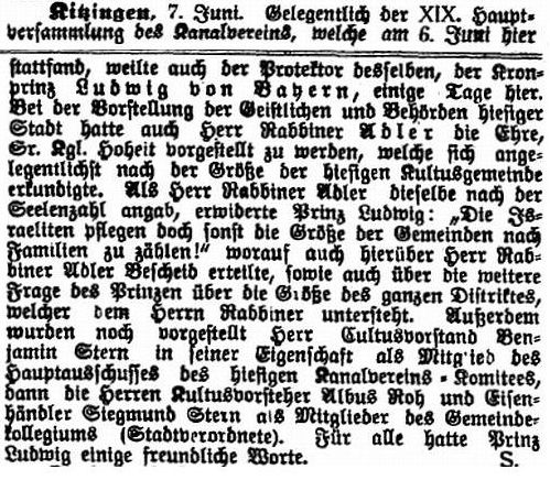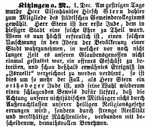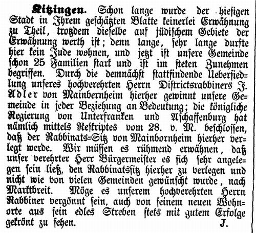 in der Zeitschrift "Der Israelit" vom 28. Juni 1871: "Kitzingen.