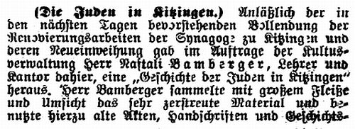 Beiträgen zur jüdischen Geschichte in Kitzingen wurden in jüdischen Periodika