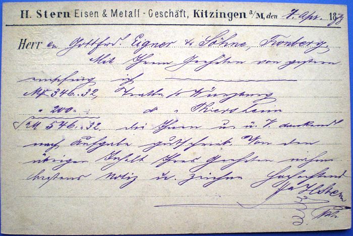 1868: "Kitzingen, im September (1868). Bezugnehmend auf meine