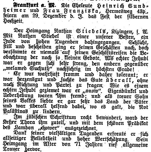 im "Frankfurter Israelitischen Gemeindeblatt" vom 29. Juni