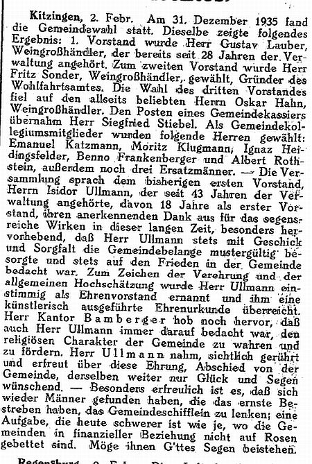 15. Februar 1936: "Kitzingen, am 31. Dezember 1935, fand die