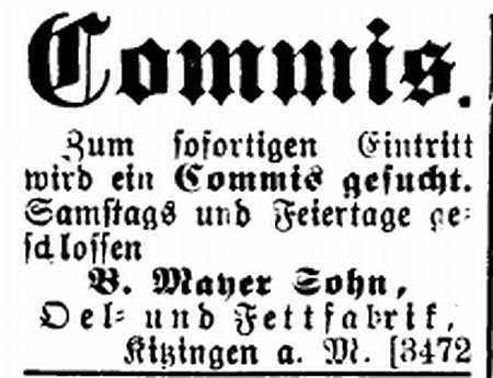 Anzeige der Öl- und Fettfabrik B. Mayer Sohn