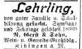vom 11. August 1874: "Ich suche für mein Tuch-, Modewaren- und
