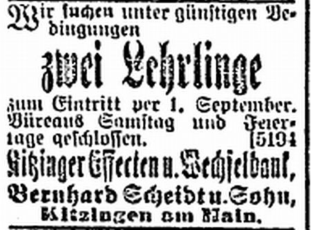 der Kitzinger Effekten- und Wechselbank Bernhard Scheidt und Sohn (1903)