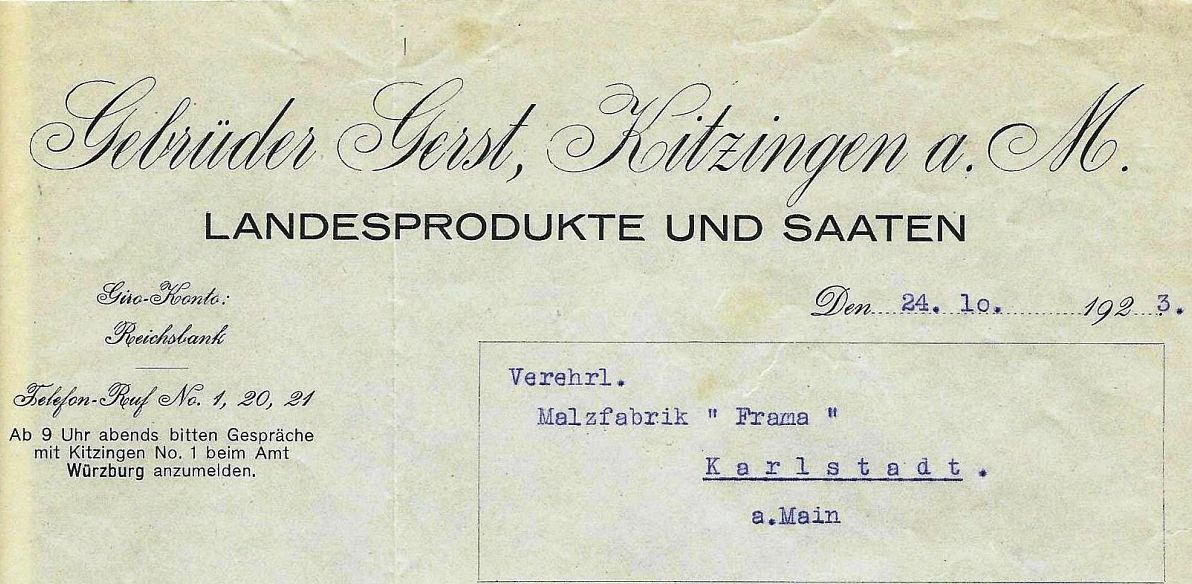 N. Gerst & Sohn, Wein- und Getreide-Großhandlung, Kitzingen am