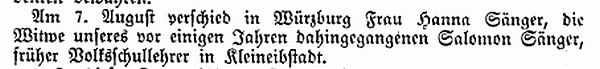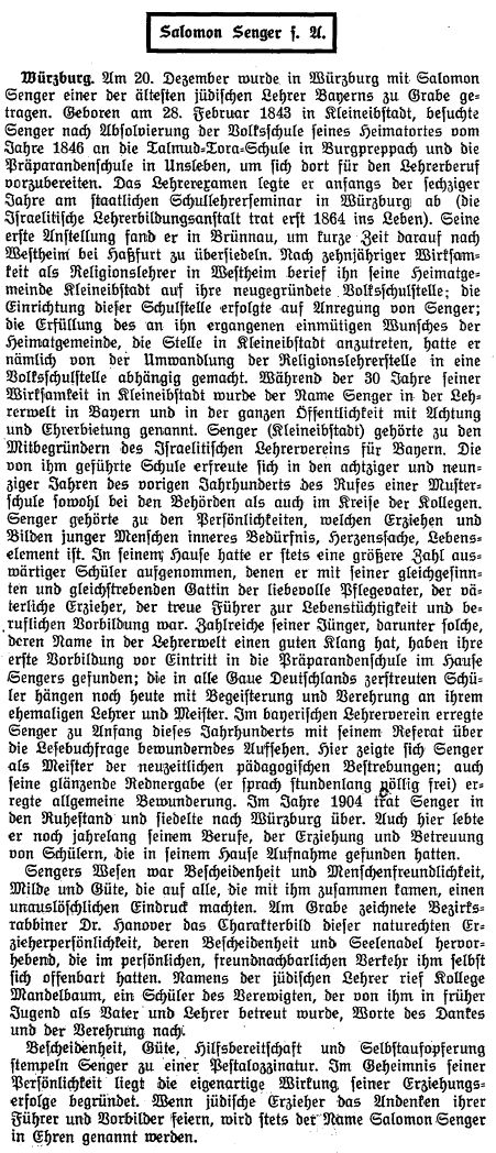 Adler (gest. 1874), der schon genannte Salomon Senger (1875-1904), Samuel