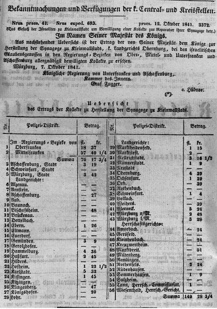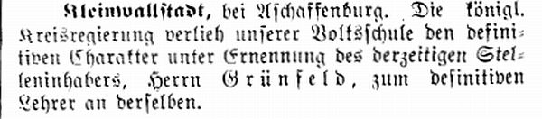 Grünfeld genannt. Die Gemeinde gehörte zum Distriktsrabbinat Aschaffenburg.